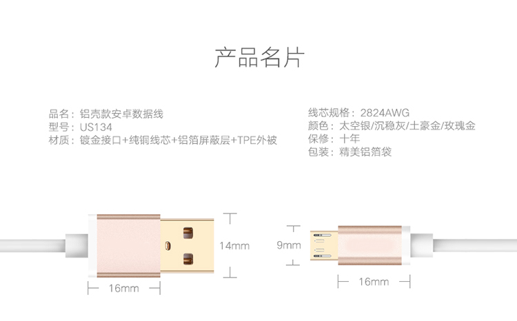 鋁殼安卓手機數(shù)據(jù)線